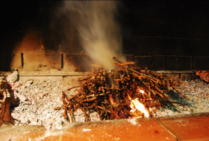 Las Brasas como veis en las fotos, son solo sarmiento lo que usamos en nuestra brasa. Dicho Sarmiento, nos lo proporciona la emblemática Bodega Vega Sicilia. Esta leña le proporciona al Lechazo un sabor exquisito. También pueden degustar otras carnes que ofrecemos, como la Pluma Ibérica de Bellota, Chuleta de Vaca o Solomillo.